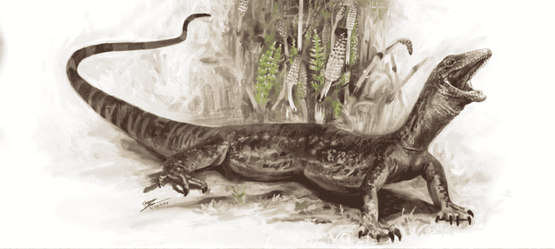The Enigmatic Jurassic reptile had curved, hook-like teeth similar to snakes, with jaws designed for gripping prey. However, its body shape and limbs were distinctly lizard-like. Measuring about 30 centimeters in length, it likely thrived in a warm, swampy environment resembling a tropical mangrove. Scientists believe it fed on insects, amphibians, and small reptiles.